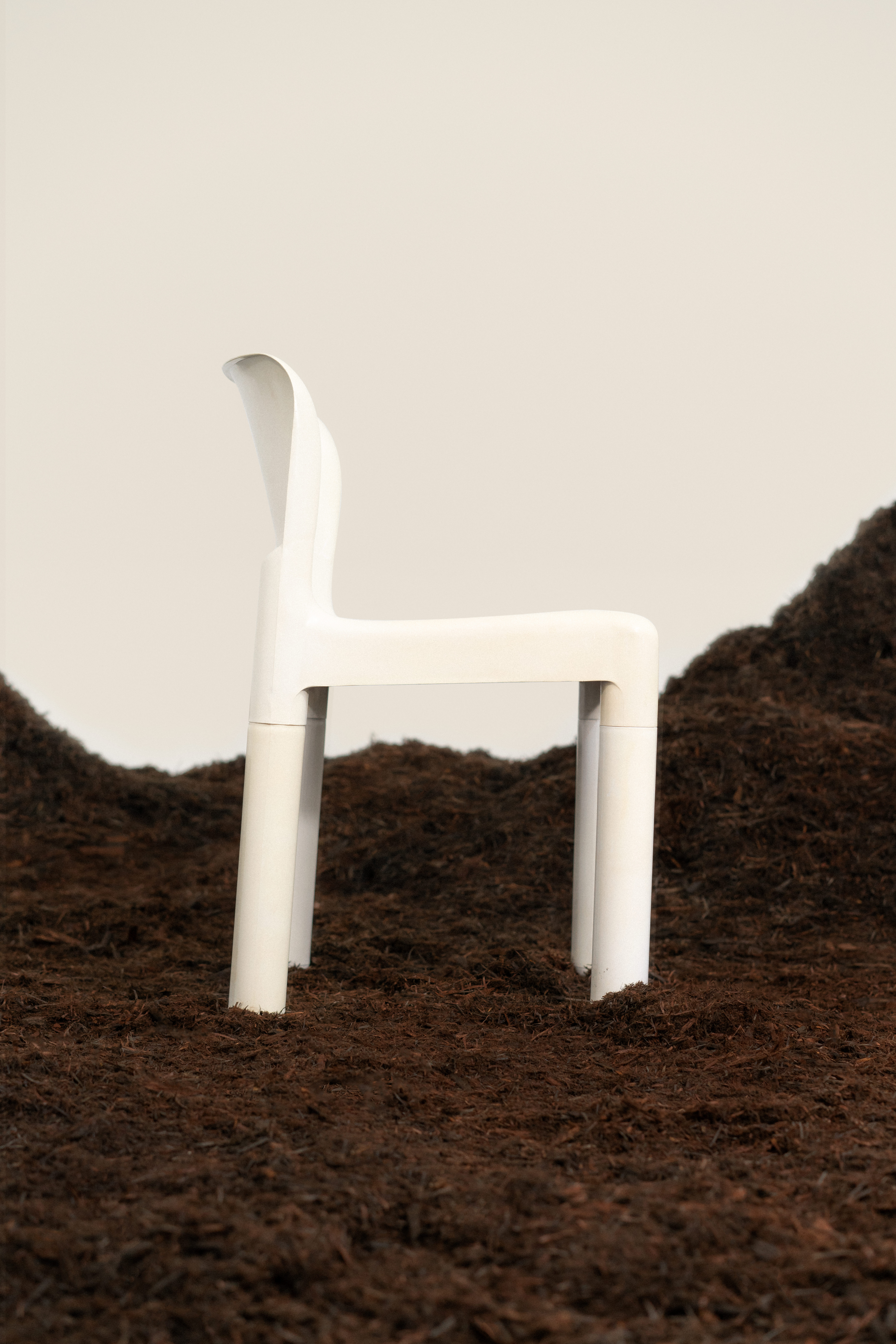 The Bartoli chair (model 4875) features a removable leg design and entirely plastic construction. The back flexes comfortably and the size/compactability proves useful for apartment living or when storage is necessary. Gifts sometimes appear inside of the legs, check occasionally.